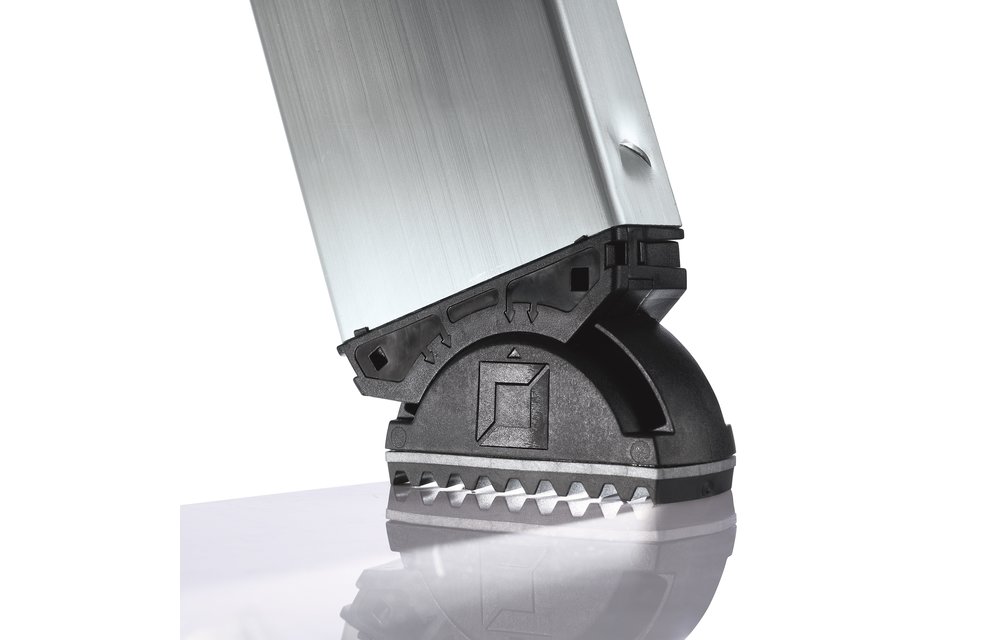 De innovatieve en prijswinnende ladderschoenen van Nivello® zijn slijt- en slipvast en hebben een inwendig scharnier. De ladderschoenen houden contact met de ondergrond, hierdoor staat de trap altijd in de optimale positie. Door het anti-slipprofiel aan de onderkant van de ladderschoenen is deze dubbele trap geschikt voor gebruik op praktisch elke ondergrond.